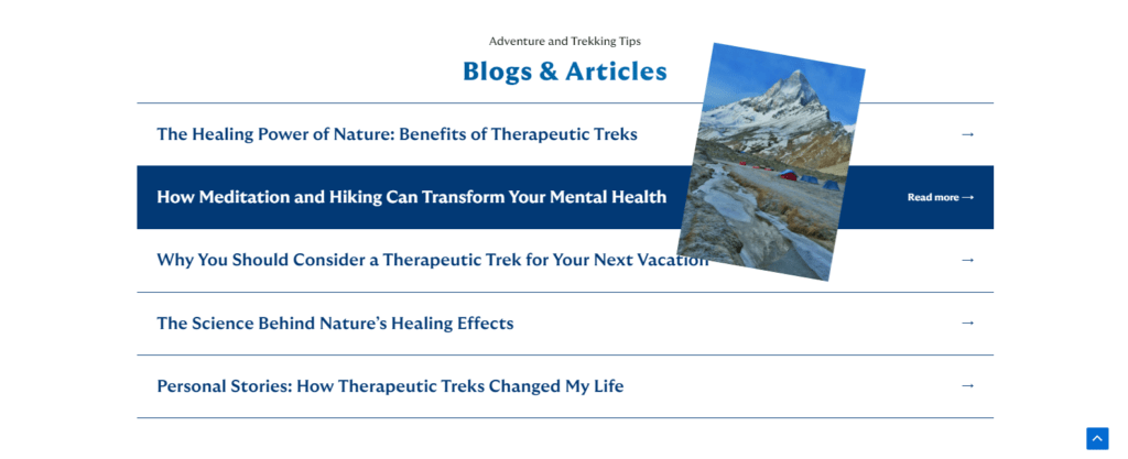 • Content Marketing: Created a blog with detailed articles on trekking routes, gear recommendations, and hiking tips, positioning Hiking Saint as an authority in the trekking community.